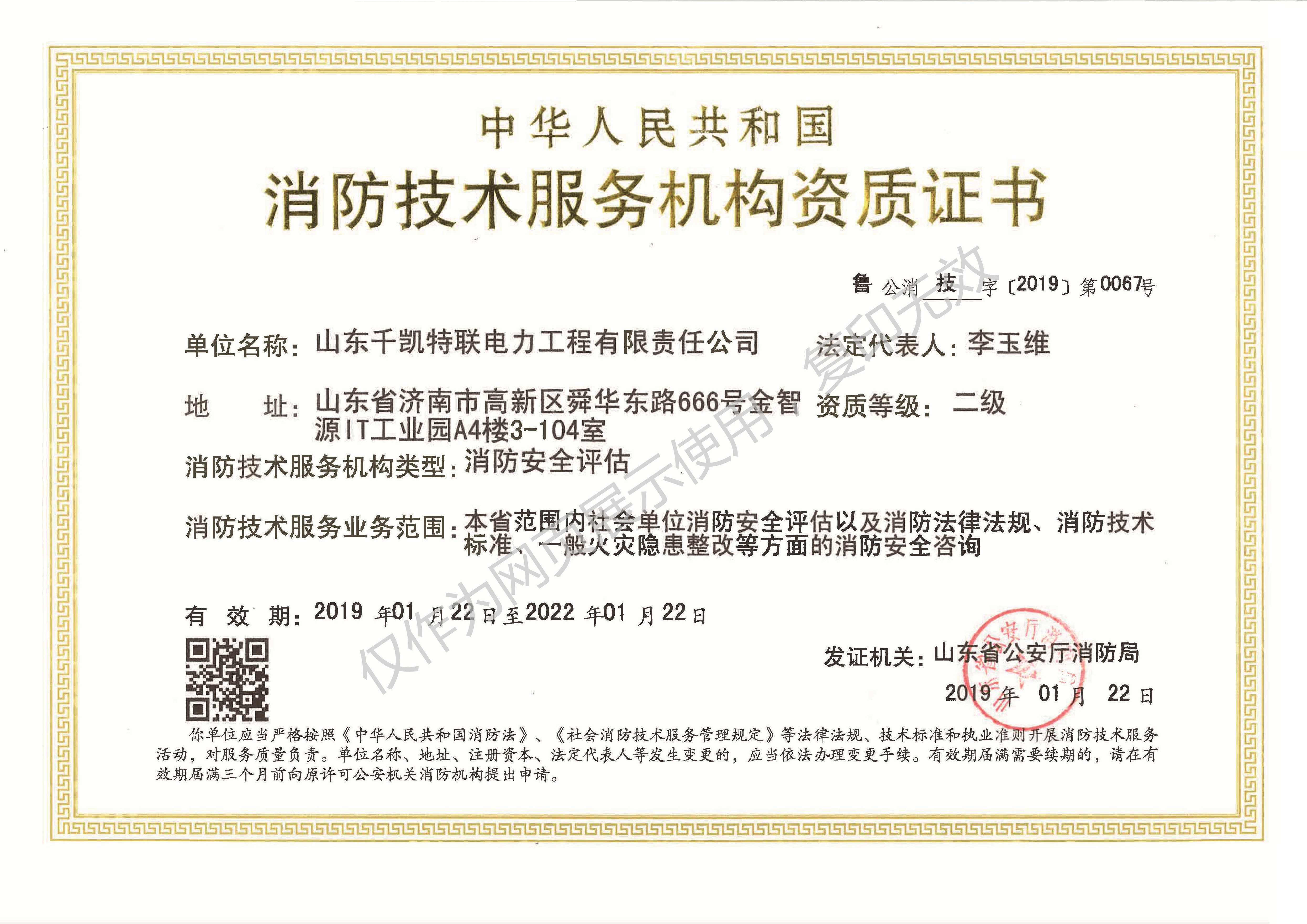消防技術服務機構資質二級證書