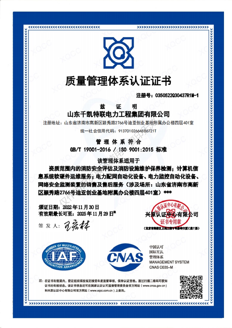 ISO9001質量管理體系證書(電力施工)