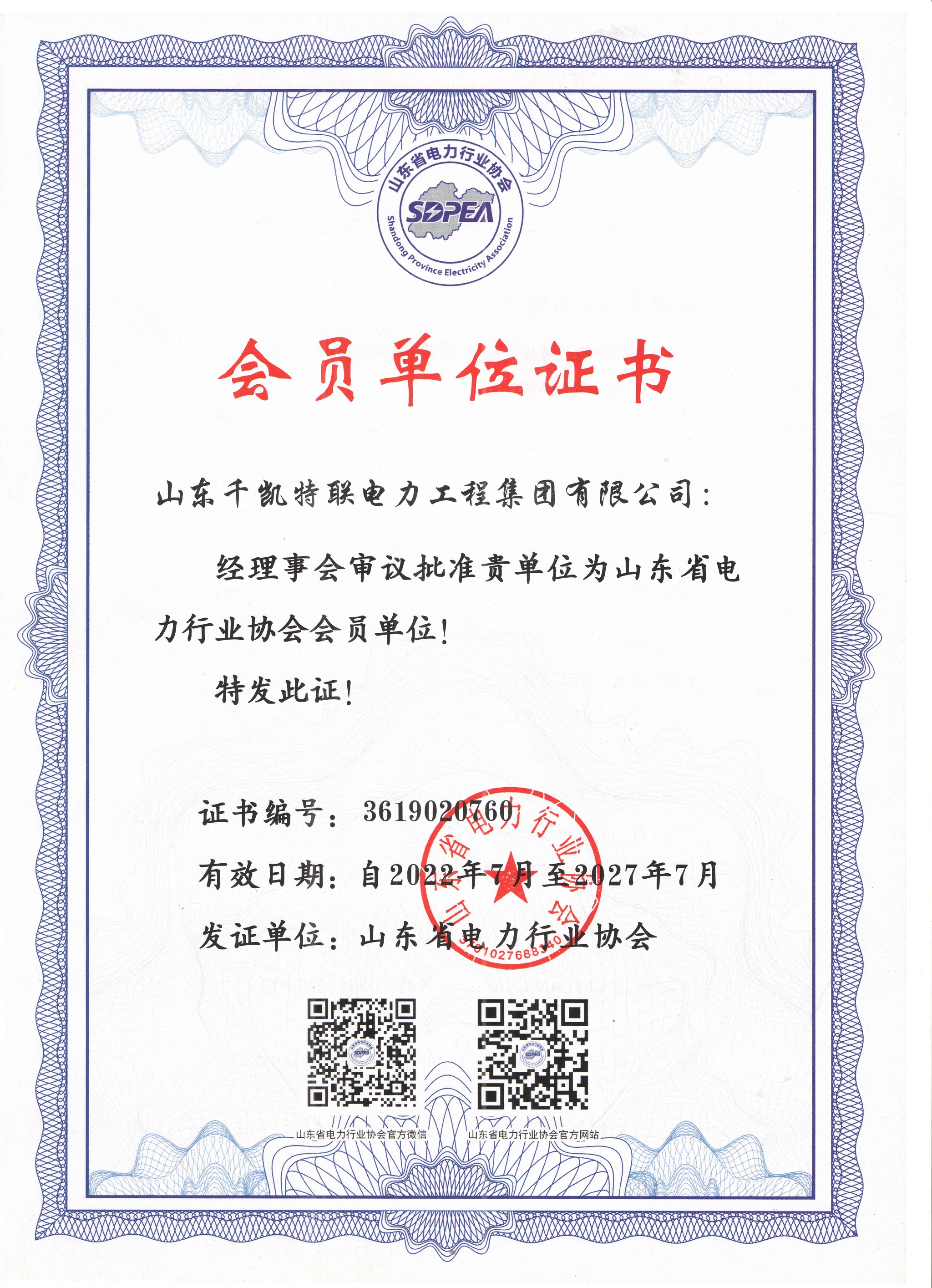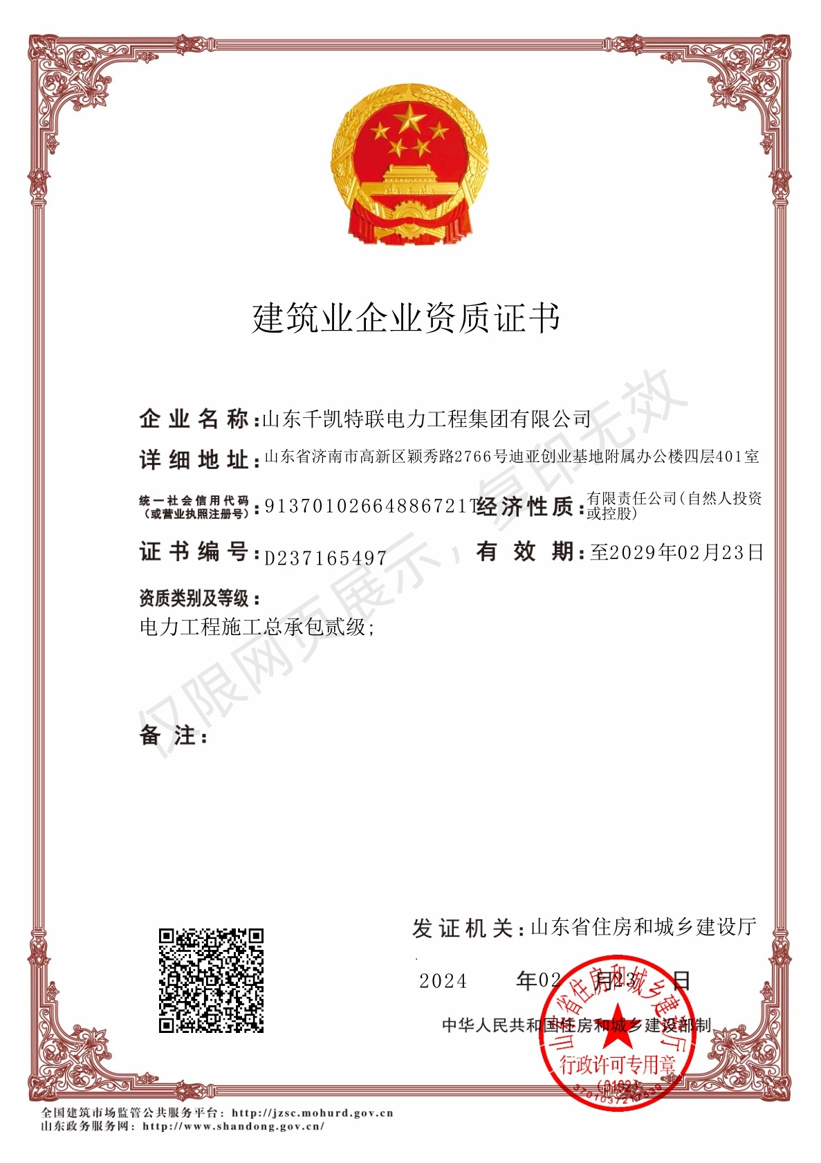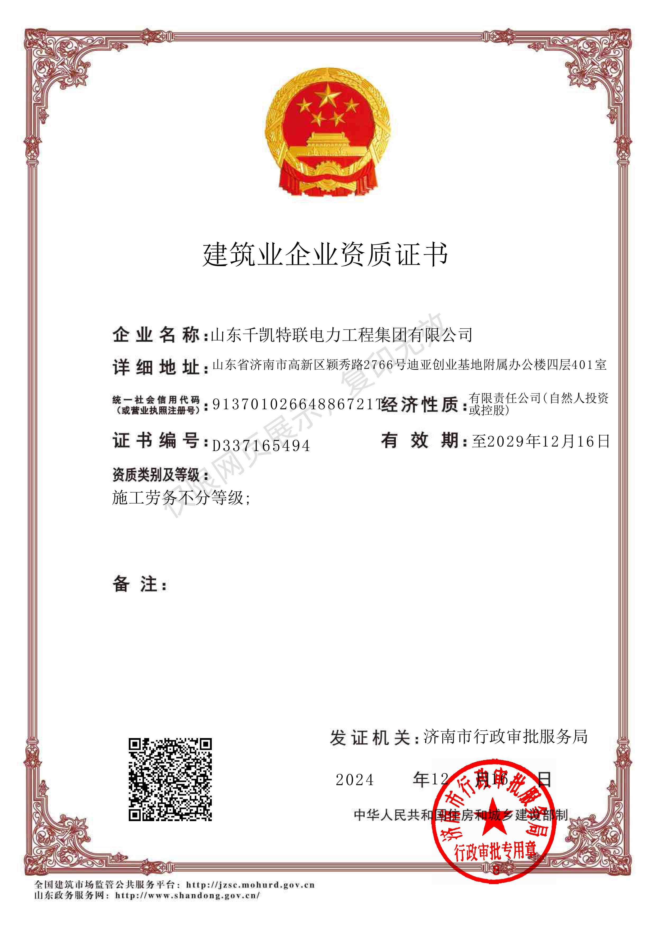電力工程施工總承包二級證書