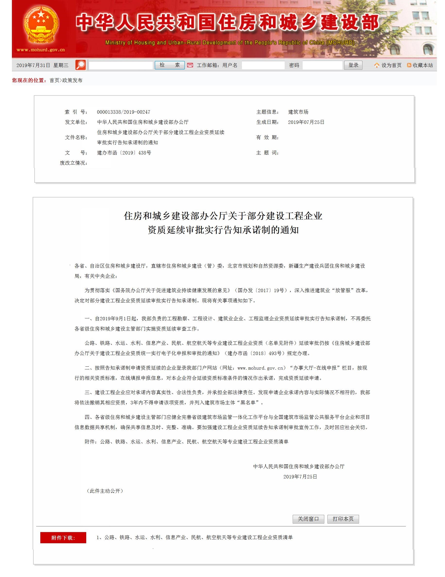 住房和城鄉建設部辦公廳關于部分建設工程企業 資質延續審批實行告知承諾制的通知