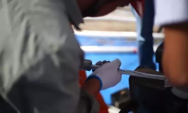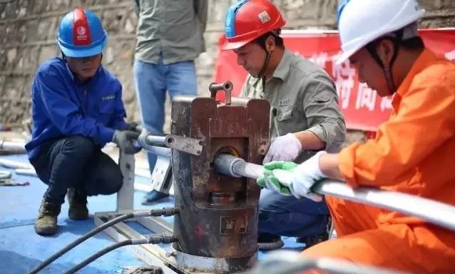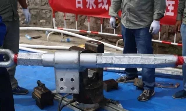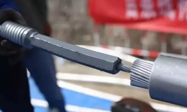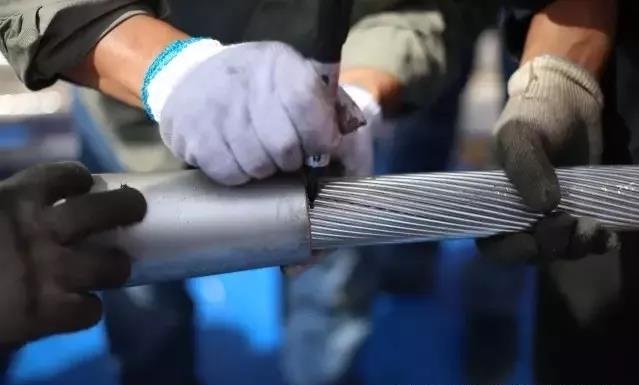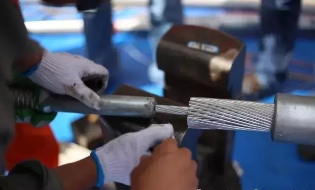 鋼管穿管:將鋼芯向耐張線夾管口穿入,穿入時應順絞線絞制方向旋轉推入至管底。