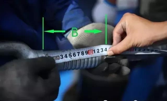 鋁管畫印:耐張鋁管鋼錨側管口向耐張鋁管中心量取數值為B的值并畫印 。