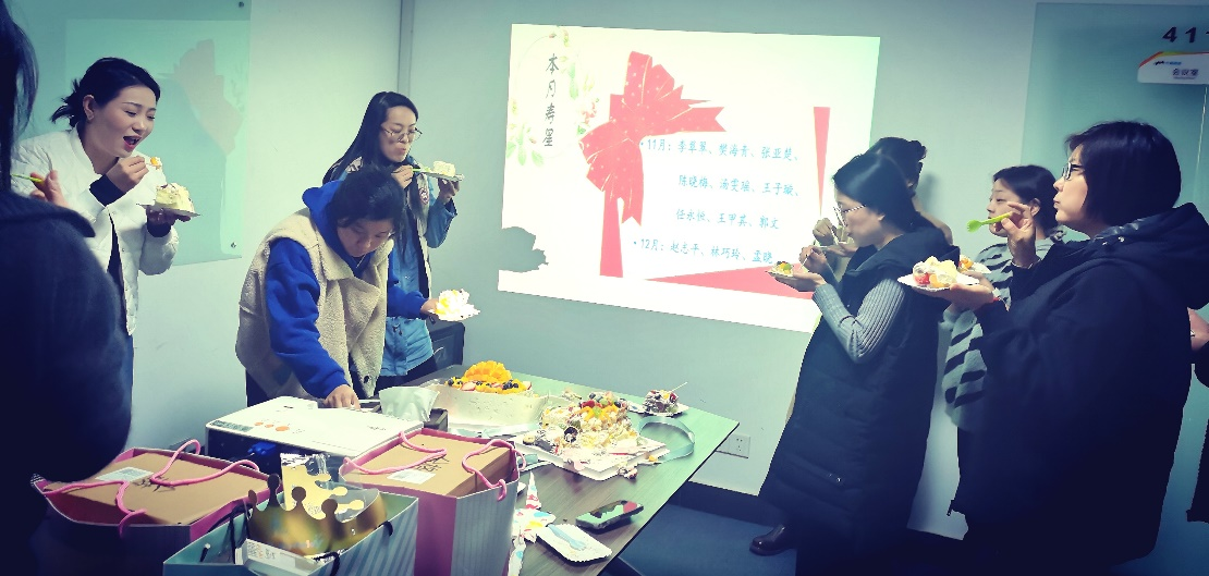 生日會于下午3點,在4樓會議室如期舉行。11月12月的壽星有:集團總部的陳曉梅、湯雯瑤、王子璇、任永恒、王甲其、郭文、趙志平、林巧玲,泰山中心的李翠翠、樊海青、張亞楚、孟曉等12位小伙伴。在大家熱烈的掌聲中,生日會開始了。